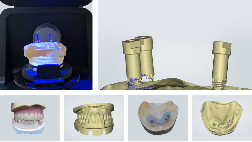 Then scan scan bodies, working jaw, bite, etc. with the AutoScan-DS-MIX dental 3D scanner.